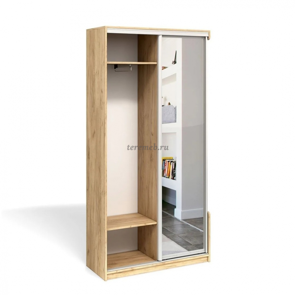 Дверь-купе с зеркалом открывает и закрывает эти части по очереди.