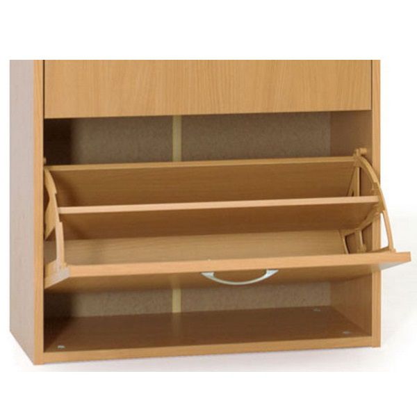 Тумба для обуви оборудована открытой нишей с одной полкой и откидной секцией, рассчитанной на 4 пары обуви.