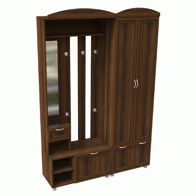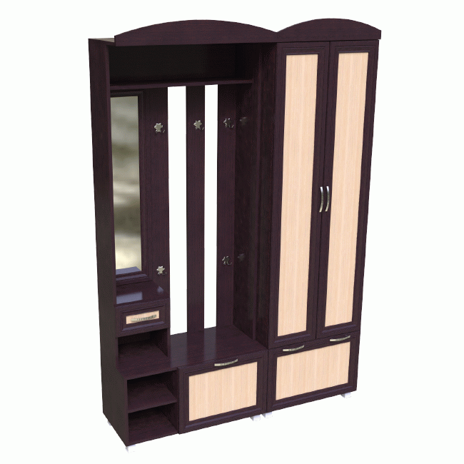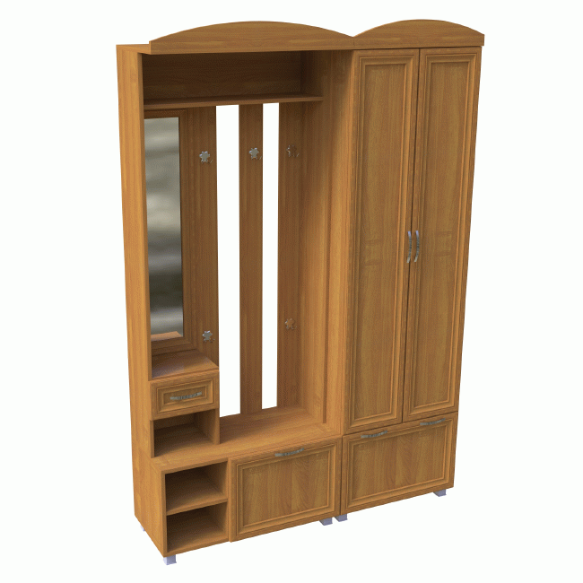 Конструкция данной модели универсальна: прихожая может собираться как на правую, так и на левую стороны.