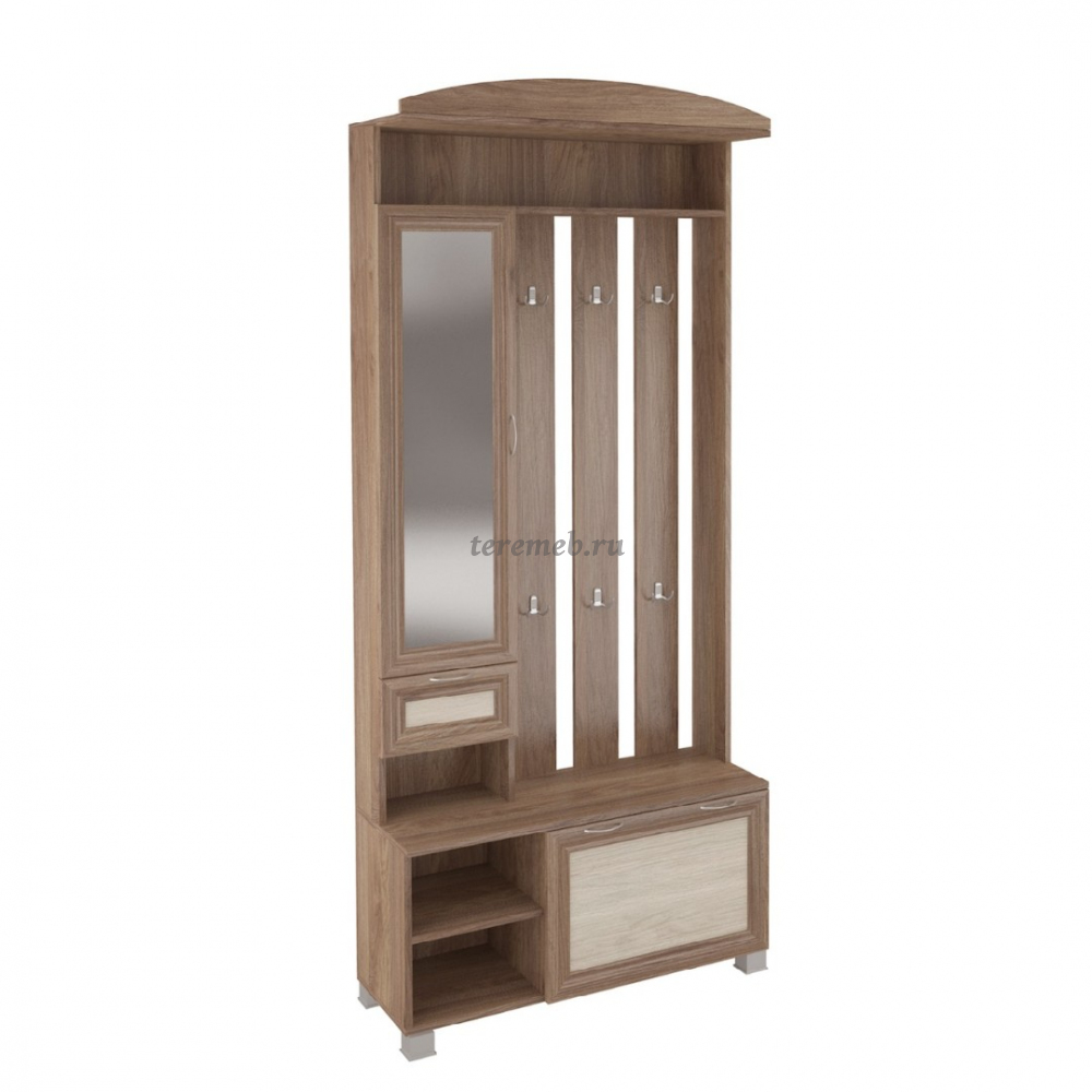 Тумба для обуви оборудована открытой нишей с одной полкой и откидной секцией, рассчитанной на 4 пары обуви.
