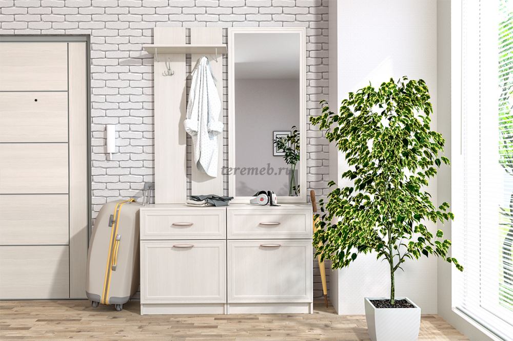 Нижняя тумба для обуви оборудована дверью с откидным механизмом.