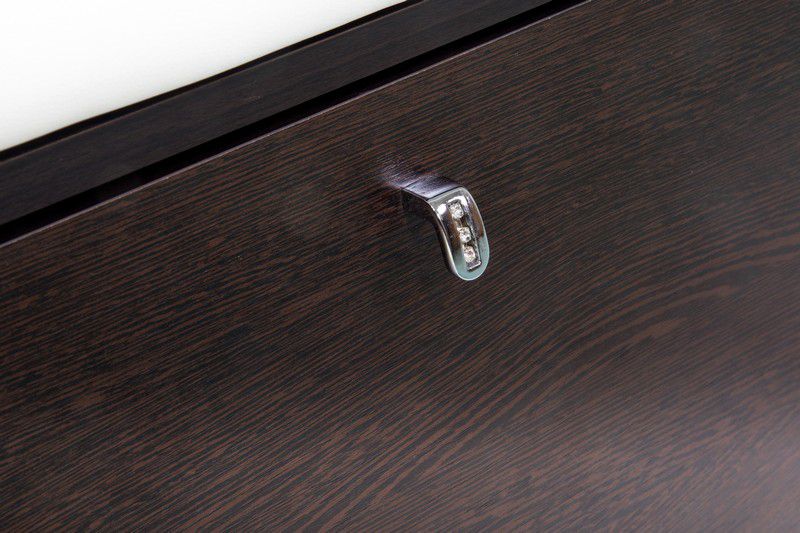 На фасаде установлена декоративная ручка современного стильного дизайна, выполненная из хромированного металла и украшена стразами.