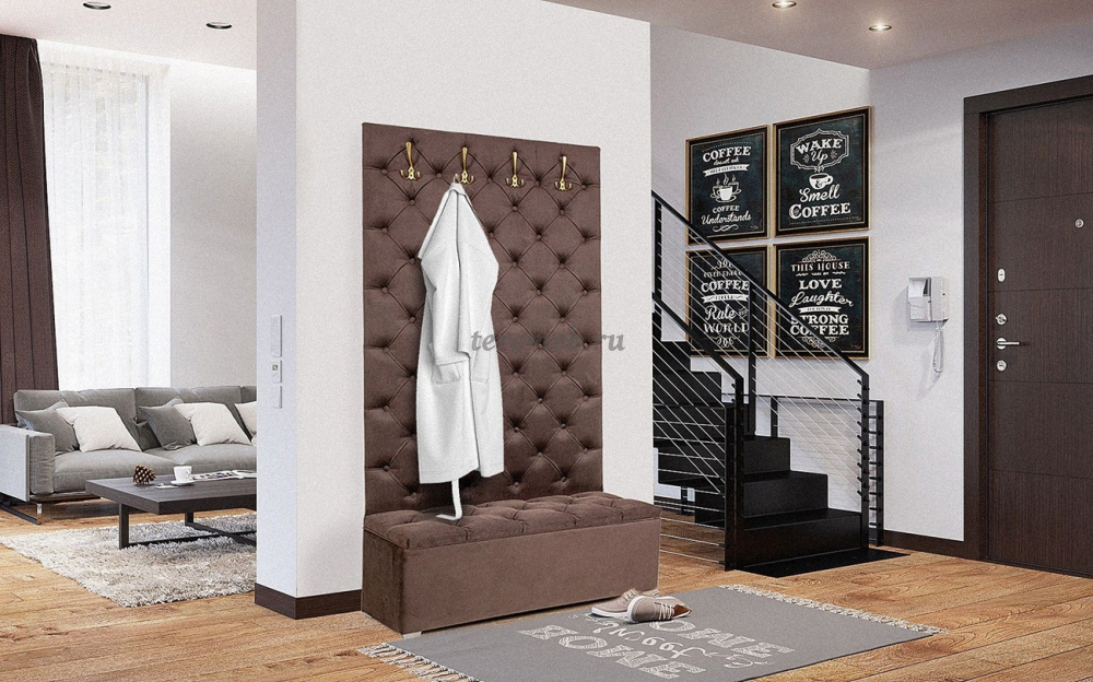 Мягкая панель-вешалка "Мишель 950" компактна, практична и легко разместится даже в маленькой прихожей квартиры или офиса.