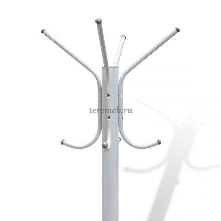 Стойка вешалки изготовлена из металлической трубы диаметром 38 мм и толщиной 1 мм с последующим покрытием порошковой краской белого цвета.