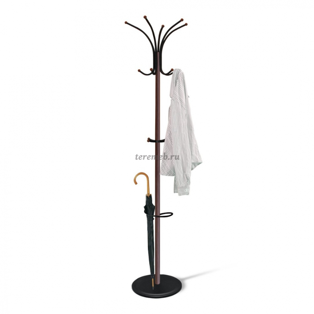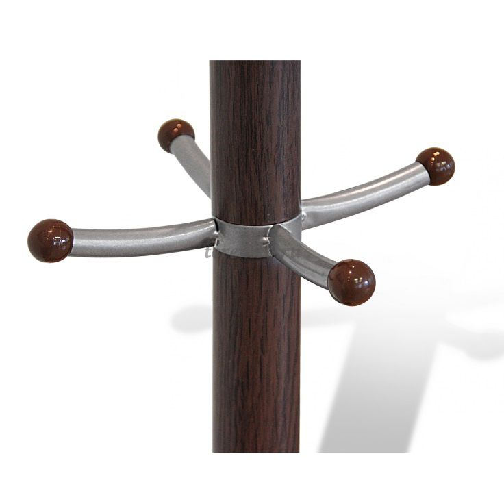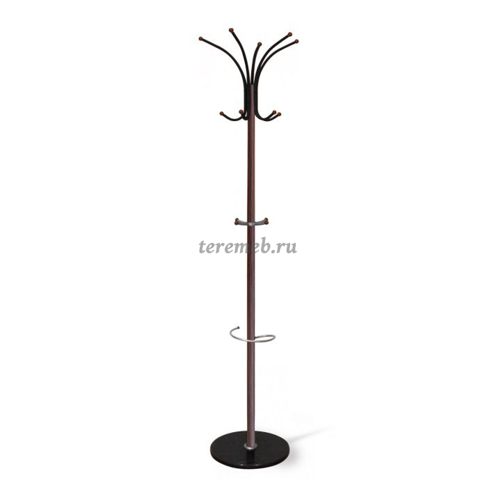 Вешалка изготовлена из металлической трубы диаметром 38 мм толщиной 1 мм с отделкой пленкой PVC под дерево цветом "тёмный орех".