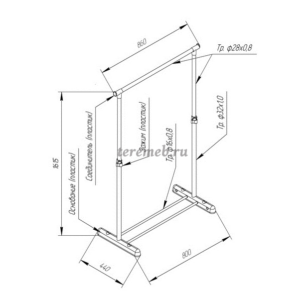 Стойки изготовлены из металлической трубы диаметром 32 мм чёрного цвета толщиной 0,8 мм.
