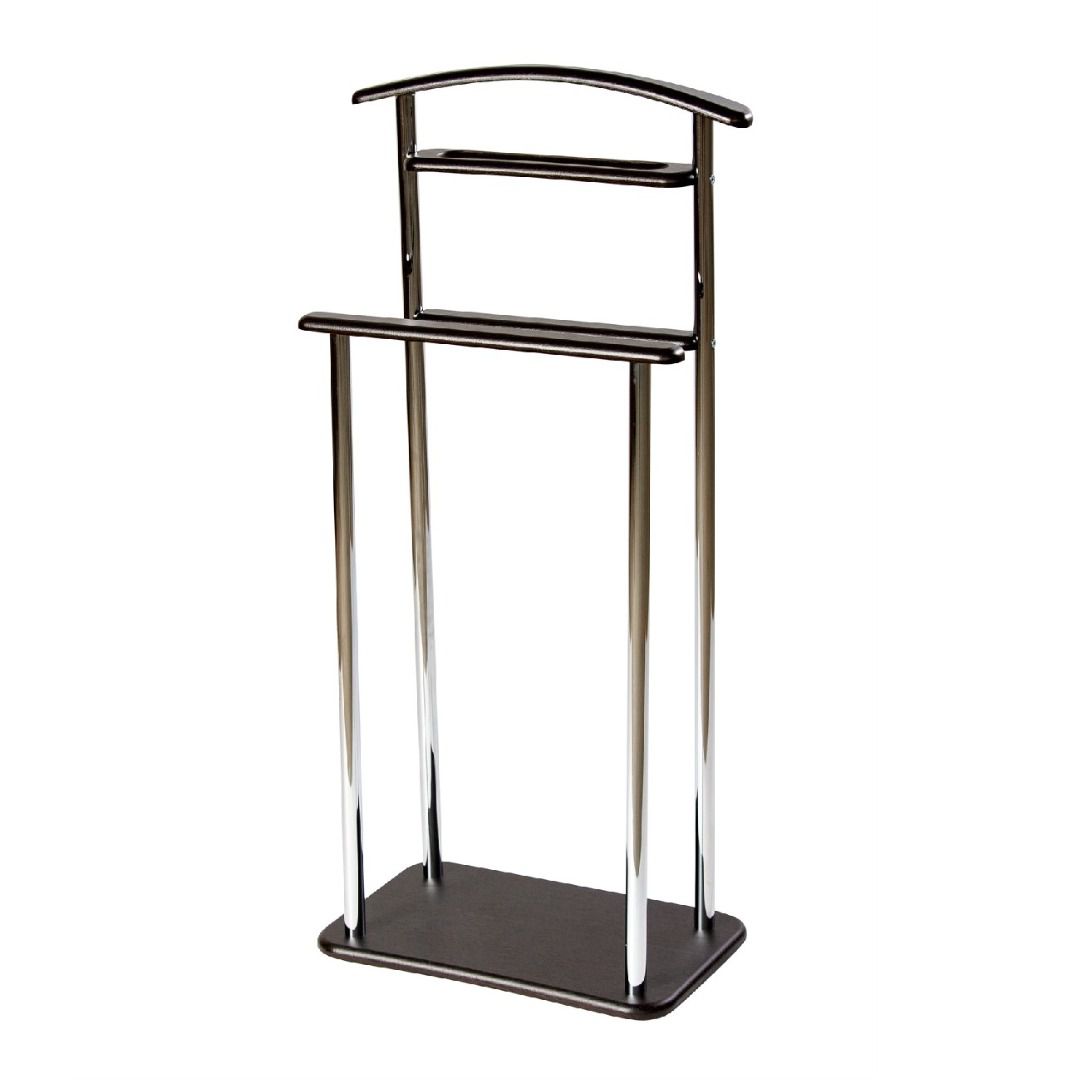 Описание: Вешалка костюмная "Элдридж" имеет современный дизайн и высокую функциональность. Благодаря наличию двух планок для брюк и полочки для аксессуаров данный вариант отлично подходит для аккуратного хранения вещей.