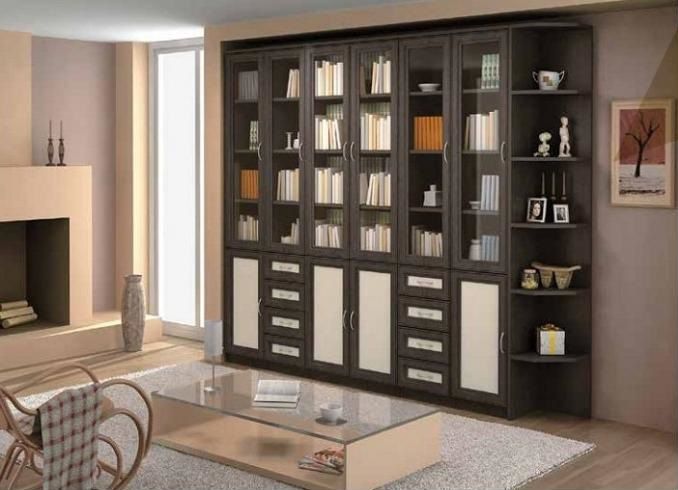 Книги будут смотреться очень красиво и при этом, будут надежно защищены дверцами с тонированными стеклами в раме из МДФ.