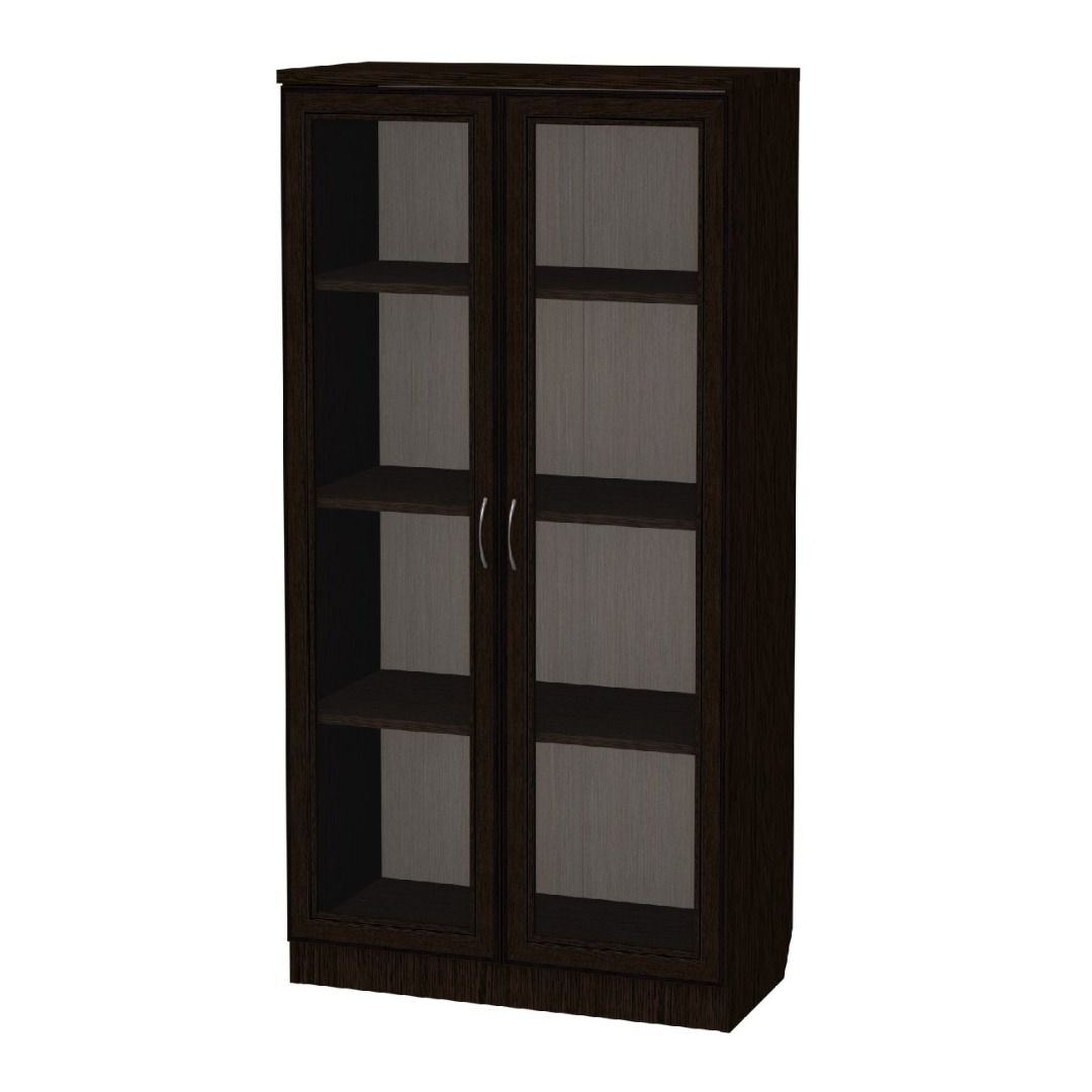 Шкаф имеет три полки для книг, закрываемые одной распашной дверью с тонированным стеклом в раме из МДФ. Полки обладают одинаковой площадью, а также расположены на равном расстоянии одна от другой. Благодаря большому размеру полок (717х350 мм), на них можно расположить достаточно много книг (нагрузка на одну полку до 25 кг). Расстояние между полками ~ 336 мм, что позволяет хранить на них книги любого формата: от маленьких по размеру художественных до огромных справочников, энциклопедий и эксклюзивных подарочных изданий.