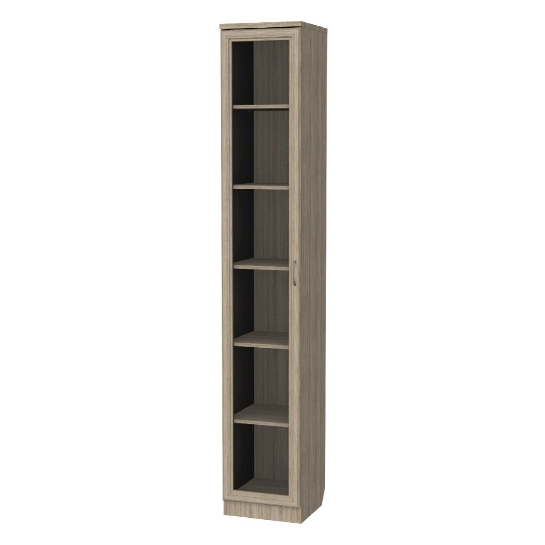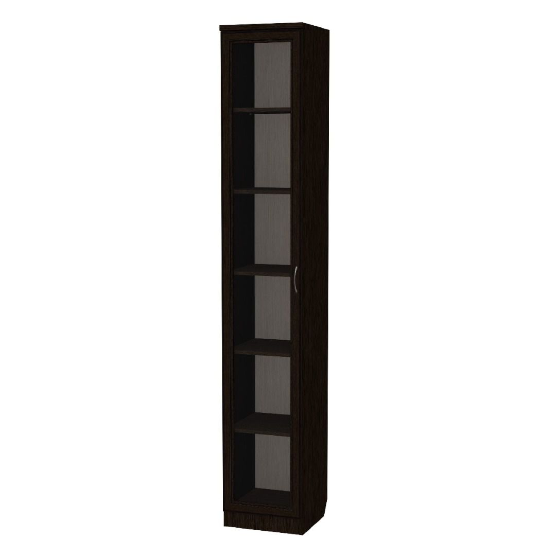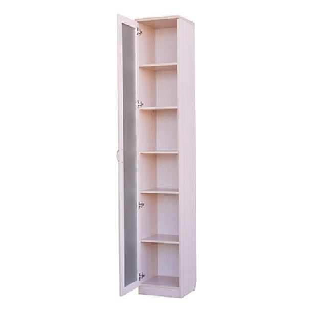 Шкаф имеет пять полок для книг, закрываемые одной распашной дверью с тонированным стеклом в раме из МДФ. Полки обладают одинаковой площадью, а также расположены на равном расстоянии одна от другой. Благодаря большому размеру полок (342х350 мм), на них можно расположить достаточно много книг (нагрузка на одну полку до 25 кг). Расстояние между полками ~ 336 мм, что позволяет хранить на них книги любого формата: от маленьких по размеру художественных до огромных справочников, энциклопедий и эксклюзивных подарочных изданий.