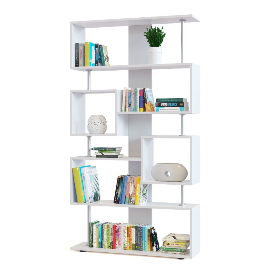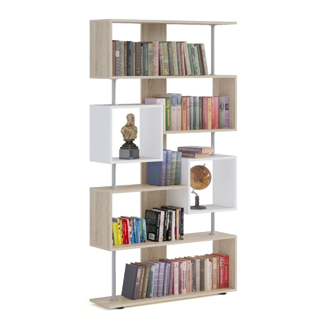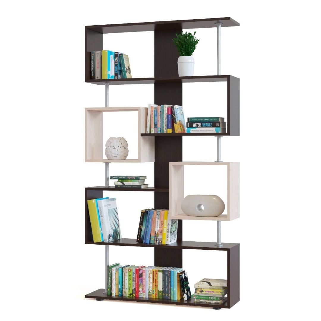 Описание: Открытый многофункциональный стеллаж "СТ-2" сделан с необычной геометрии полок, которые будто парят в воздухе благодаря металлическим элементами между ними. .