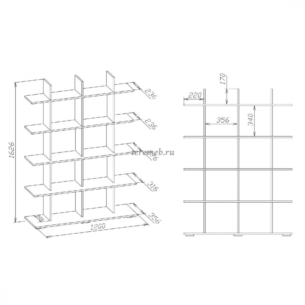 Современный дизайн стеллажа "СТ-5" позволяет гармонично разместить изделие в рамках многих интерьеров домашнего или офисного пространства, а практичность поможет выгодно оформить зону хранения и спланировать место для размещения книг, сувениров и документов оптимальным образом.