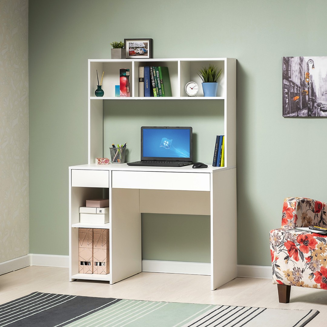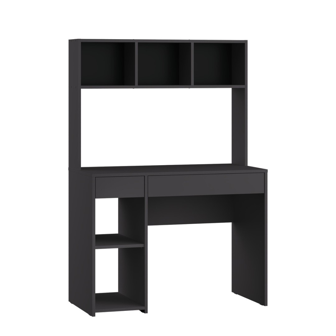 Левая часть стола состоит из двух открытых полок для бумаги, папок и других документов.