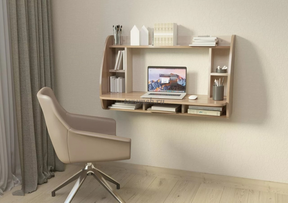 Такой подвесной стол подходит для выполнения работы с ноутбуком, а так же для студентов и помогает грамотно организовать пространство в любом помещении с небольшой площадью.