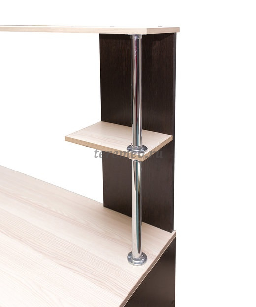 На большой полке свободно разместятся принтер и колонки, а также предусмотрена небольшая полка для CD-дисков и других мелких предметов. Высота полки от столешницы 708 мм.