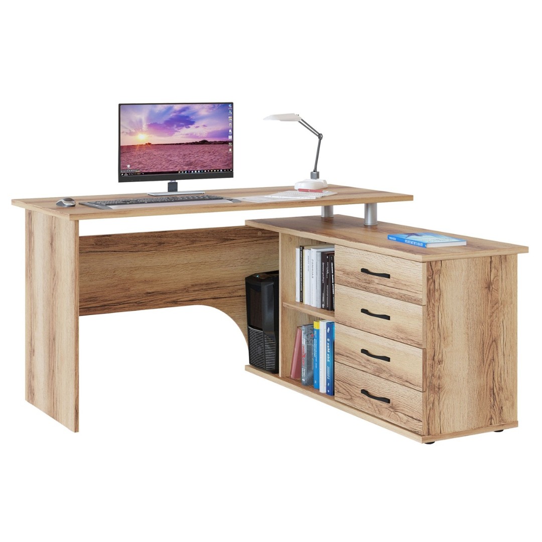 Основная столешница имеет ширину 1400 мм, позволяя разместить компьютер и рабочие материалы.