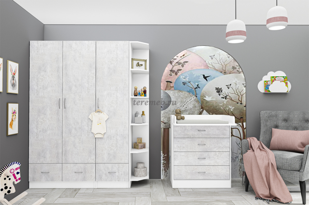 Комод изготовлен из высококачественного ламинированого ДСП толщиной 16 мм классом эмиссии Е-1, что соответствует нормативам, принятым при изготовлении мебели для детских комнат.