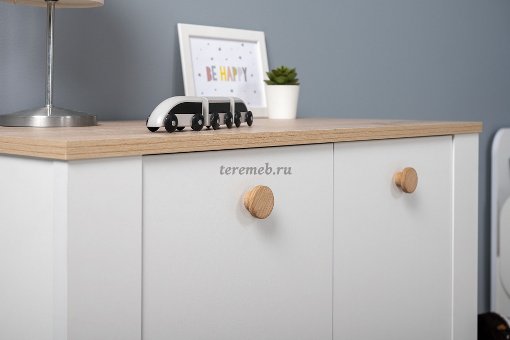 На фасадах установлены современные ручки, выполненные из натурального массива дуба.