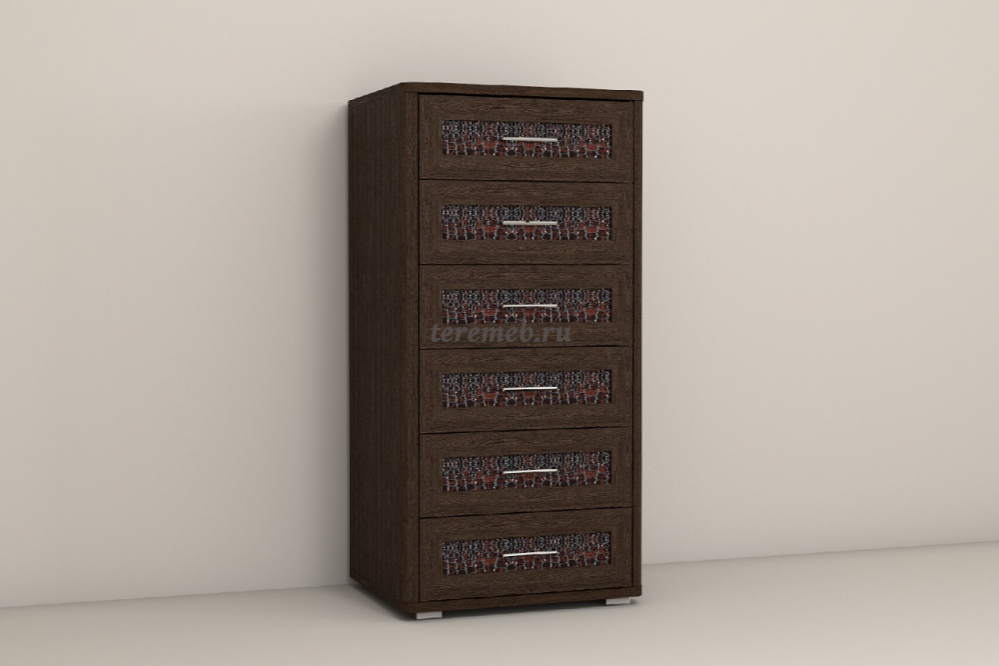 Комод оснащён шестью выдвижными ящиками на роликовых направляющих, способных без поломок выдерживать сотни выдвижений.