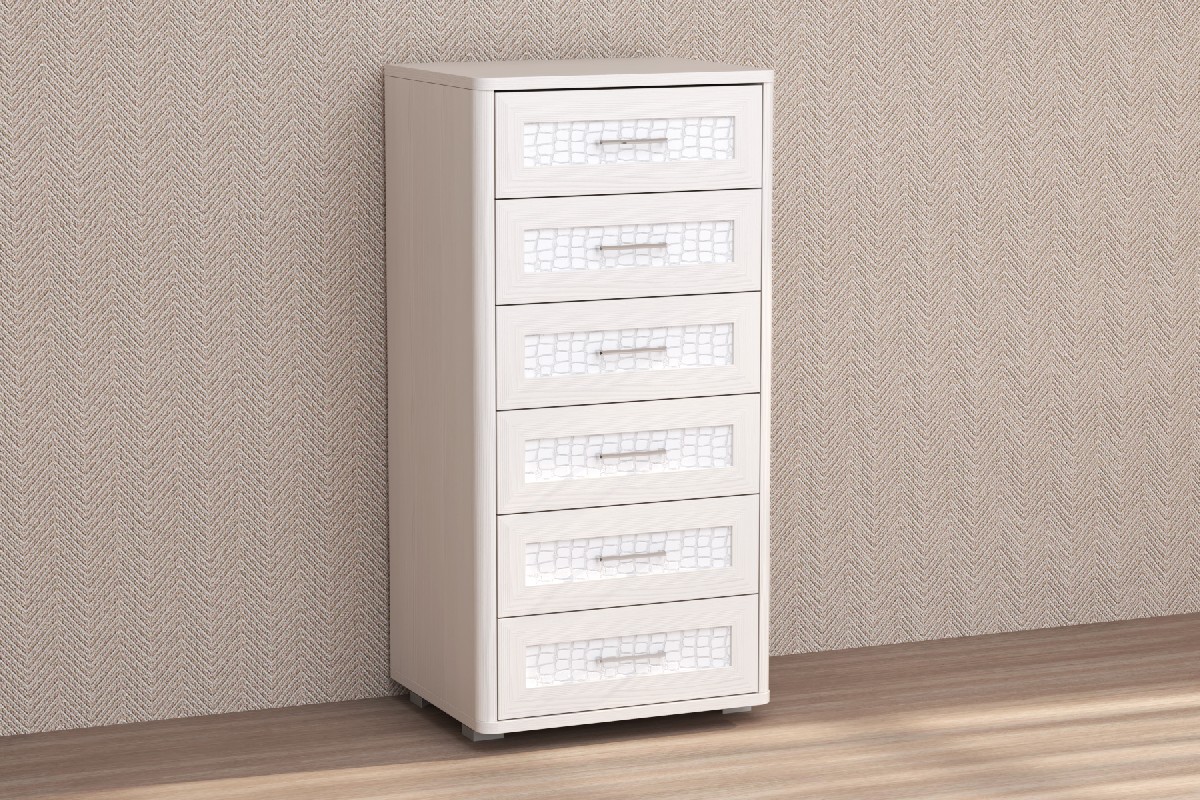 Благодаря шикарному притягательному внешнему виду комод "Кэт-4 (6 ящиков)" отлично впишется в мебельный ансамбль спальни, прекрасно дополнив собой стилистику остальных предметов.