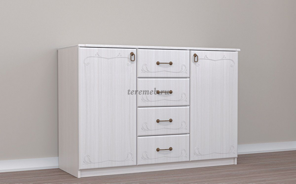 Описание: Комод "Кэт-6 (2 створки, 4 ящика)" счетает в себе роскошь и изысканный стиль. Входит в модульный спальный гарнитур "Кэт-6", выполненный с ним в едином дизайне и цветовой гамме.