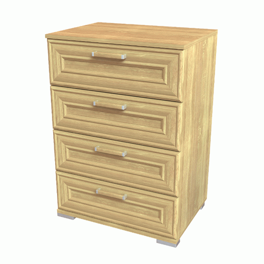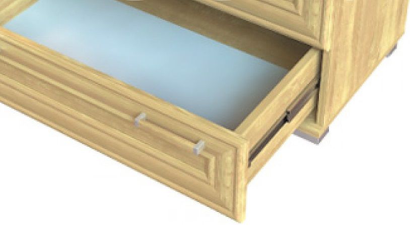 Комод имеет четыре больших выдвижных ящика одинаковые по размеру.