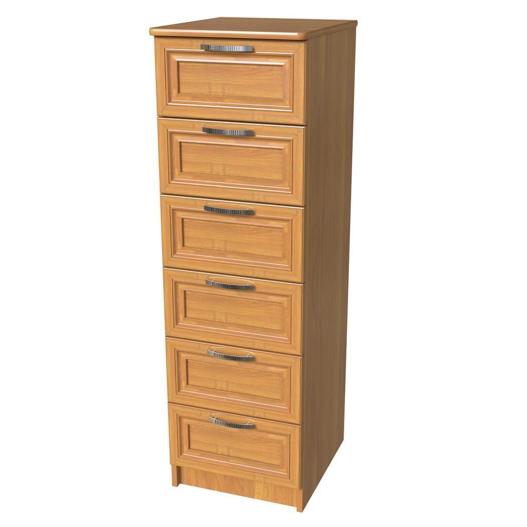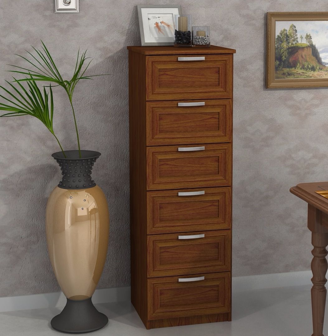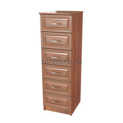 Описание: Комод "КМ-5" сочетает в себе классический дизайн, превосходное качество и солидный внешний вид. Отличается узкой формой и большой высотой. Функционально заполнит любой прогал между мебелью, к тому же можно поставить несколько таких комодов рядом.
