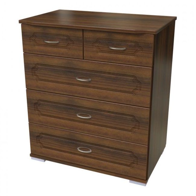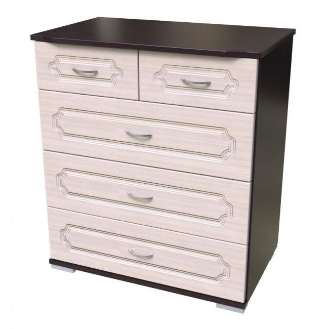 Комод имеет три широких ящика для белья и два небольших выдвижных ящика для мелочей.