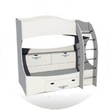 Разнообразный модельный ряд. Двухэтажная кровать может быть выполнена в самых разных стилях. И это несмотря на то, что конструкция достаточно однообразна. Мастера точно знают, как обыграть ее в различных стилистических нотах. В комплекте можно приобрести и другую мебель, с помощью которой можно составить целый гарнитур.