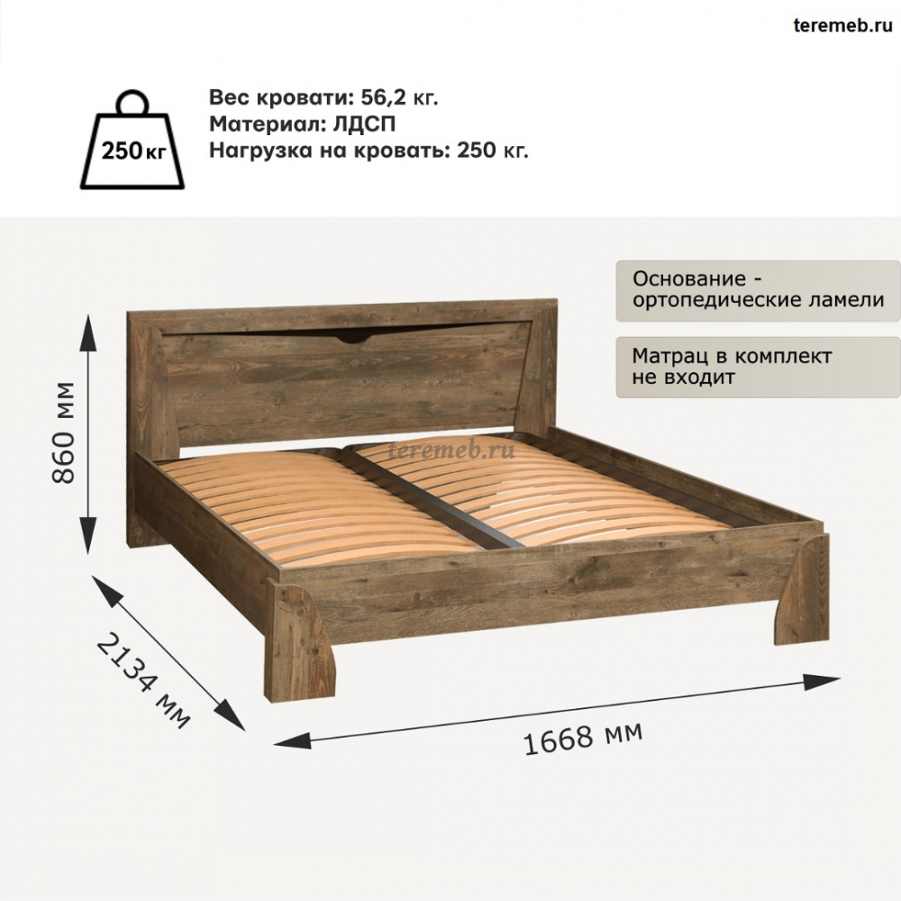 Матрас к данной кровати в комплект не входит и заказывается дополнительно.