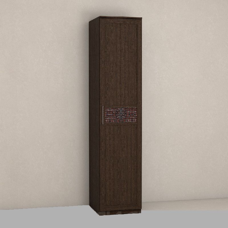 Фасады отделаны высокачественной искусственной кожей с тиснением под рептилию и погонажного рамочного профиля МДФ, покрытого финиш-плёнкой, что придаёт необычность и оригинальный внешний вид этой мебели.