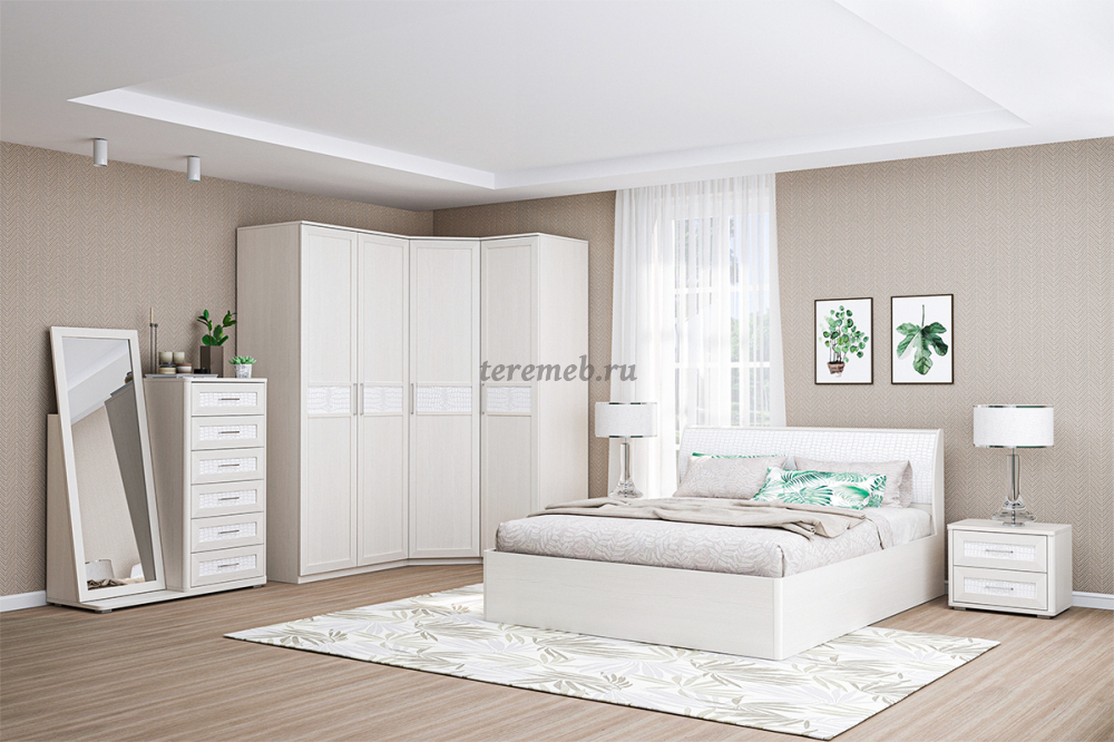 Модульная спальня "Кэт-4 Caiman" подходит для людей абсолютно всех возрастов, а вставки из экокожи добавляют спальному гарнитуру оригинальности и утончённости.