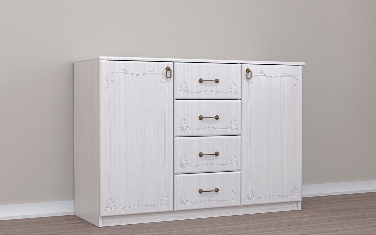 Описание: Модульный спальный гарнитур "Кэт-6" выполнен в классическом стиле, украшен богатым декором с резным узором.