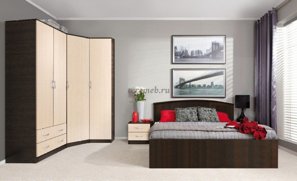 Кровать в данном наборе может поставляться в цветах "Дуб белфорт" или "Венге".