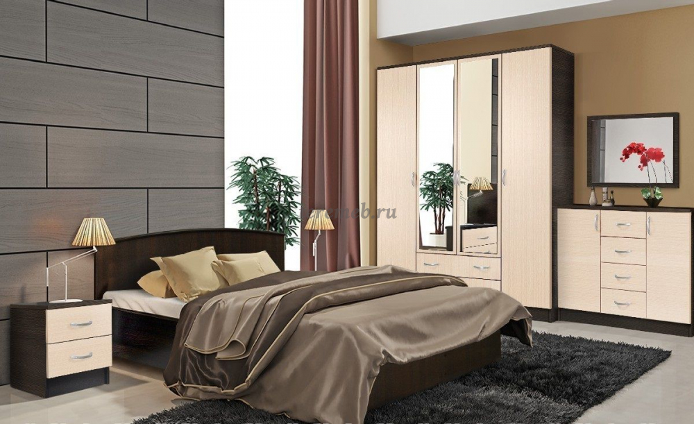 Кровать в данном наборе может поставляться в цветах "Дуб белфорт" или "Венге".