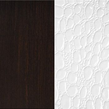 Фасады ящиков отделаны высокачественной искусственной экокожей с тиснением под рептилию и погонажного рамочного профиля МДФ, покрытого финиш-плёнкой, что придаёт необычность и оригинальный внешний вид этой модели.