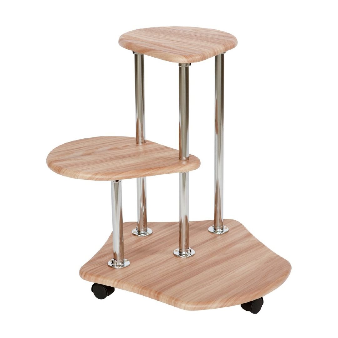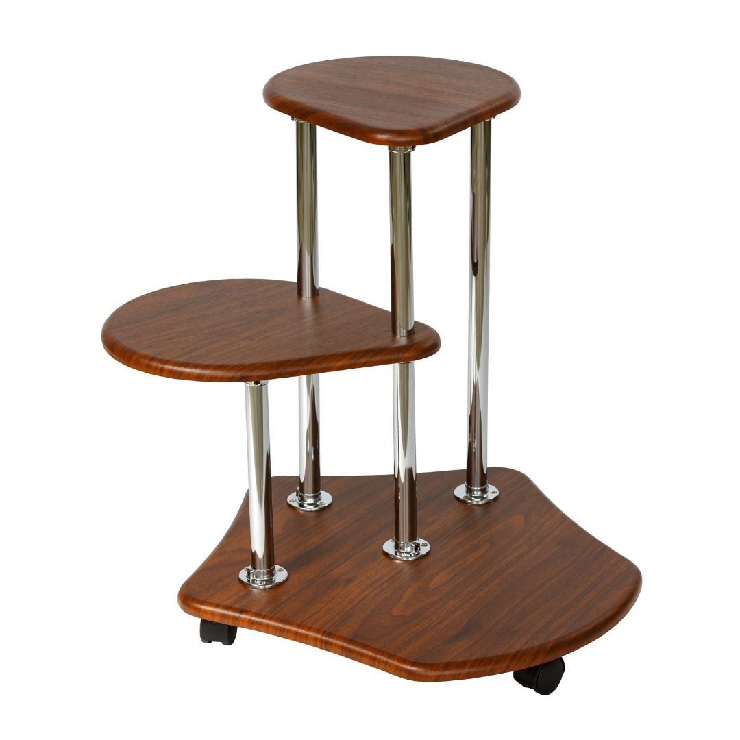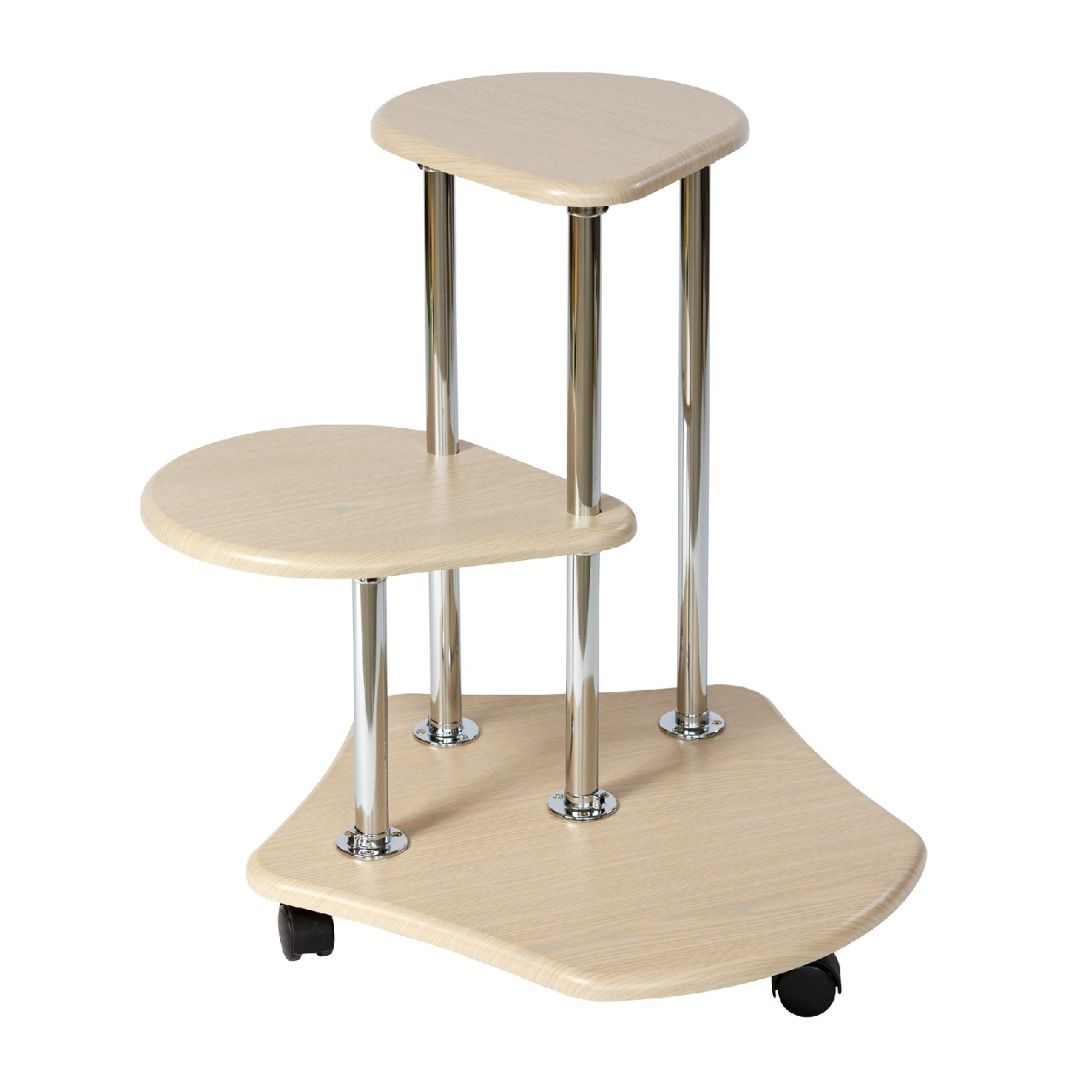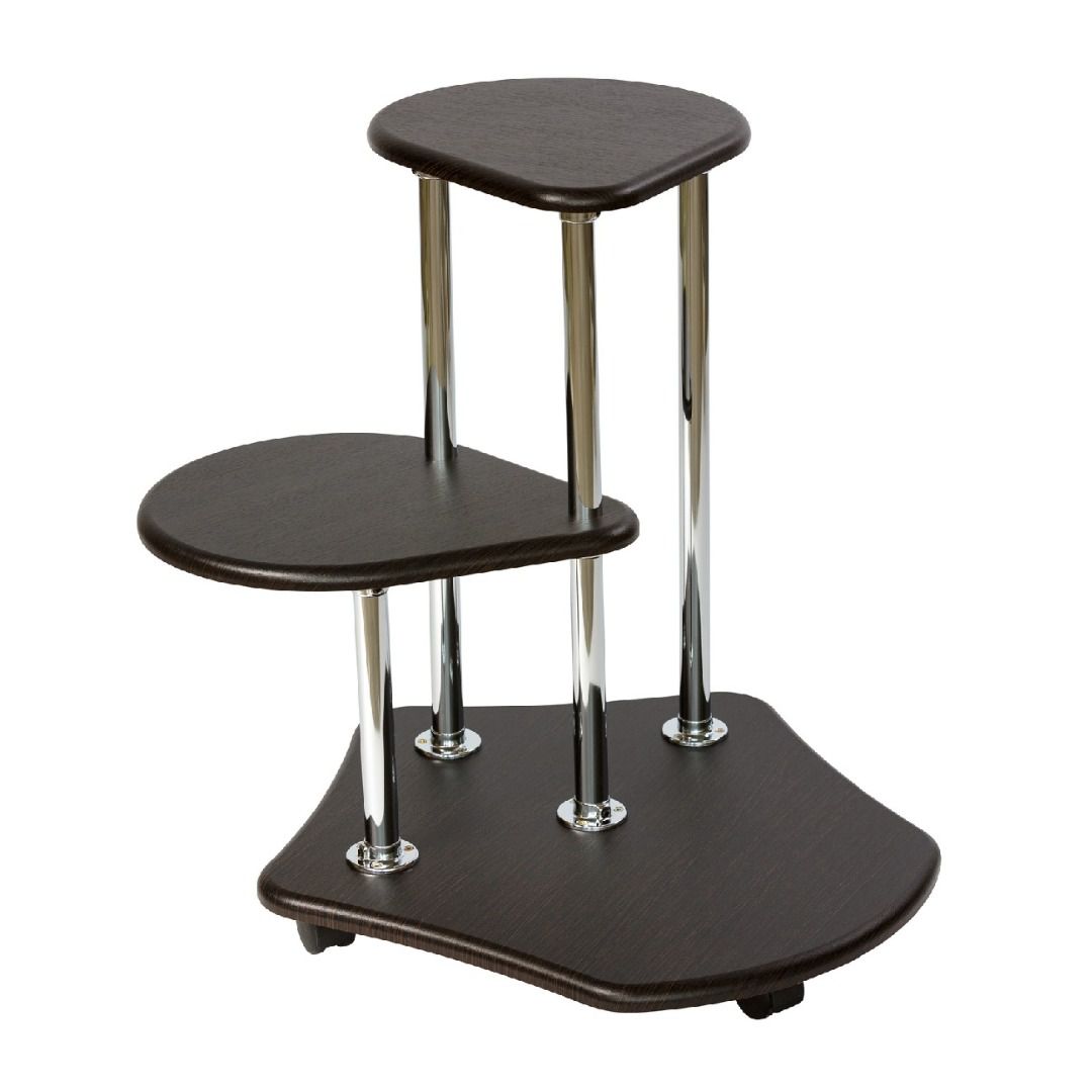 Стойки изготовлены из металлических хромированных труб диаметром 25 мм. Полки выполнены из современного экологичного материала МДФ толщиной 16 мм, облизованного высококачественными плёнками ПВХ.