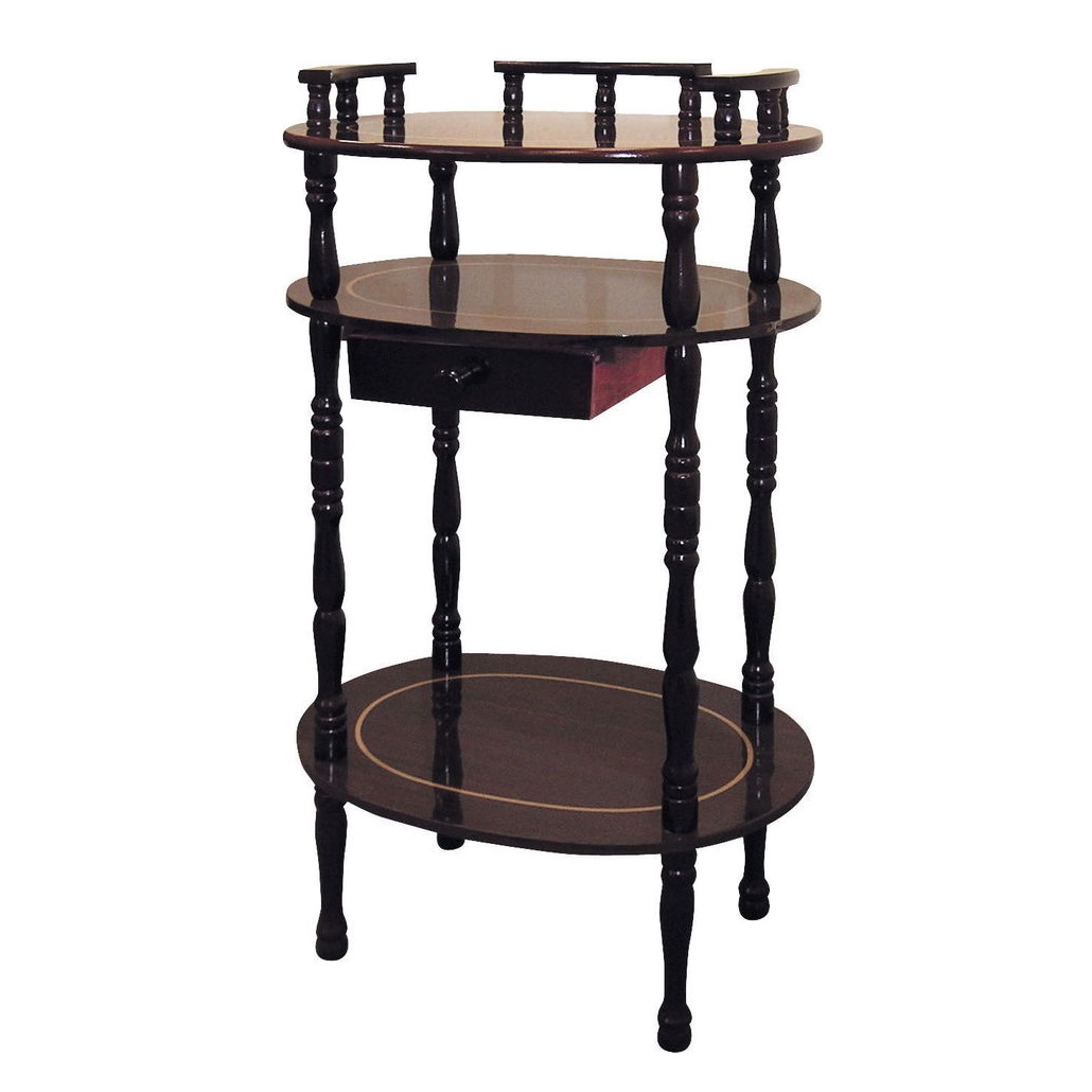 Описание: Деревянная трехъуровневая овальная этажерка "JW-106" на четырех резных ножках выполнена в стиле "ретро".