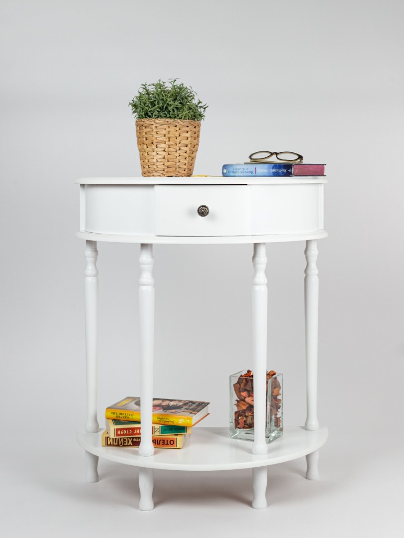 Описание: Подставка "H-112S″ выполнена в стиле ретро: с двумя фигурными столешницами, ящиком для мелочей и черырьмя элегантными декоративными ножками.