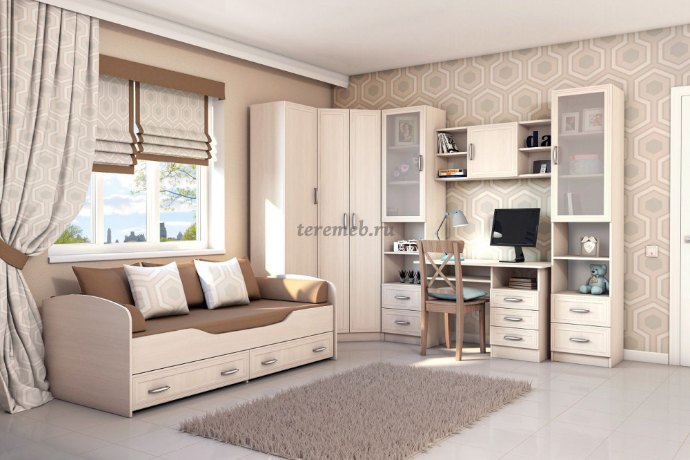Корпус изготовлен из высококачественного ламинированого ДСП толщиной 16 мм классом эмиссии Е-1, что соответствует нормативам, принятым при изготовлении мебели для детских комнат.