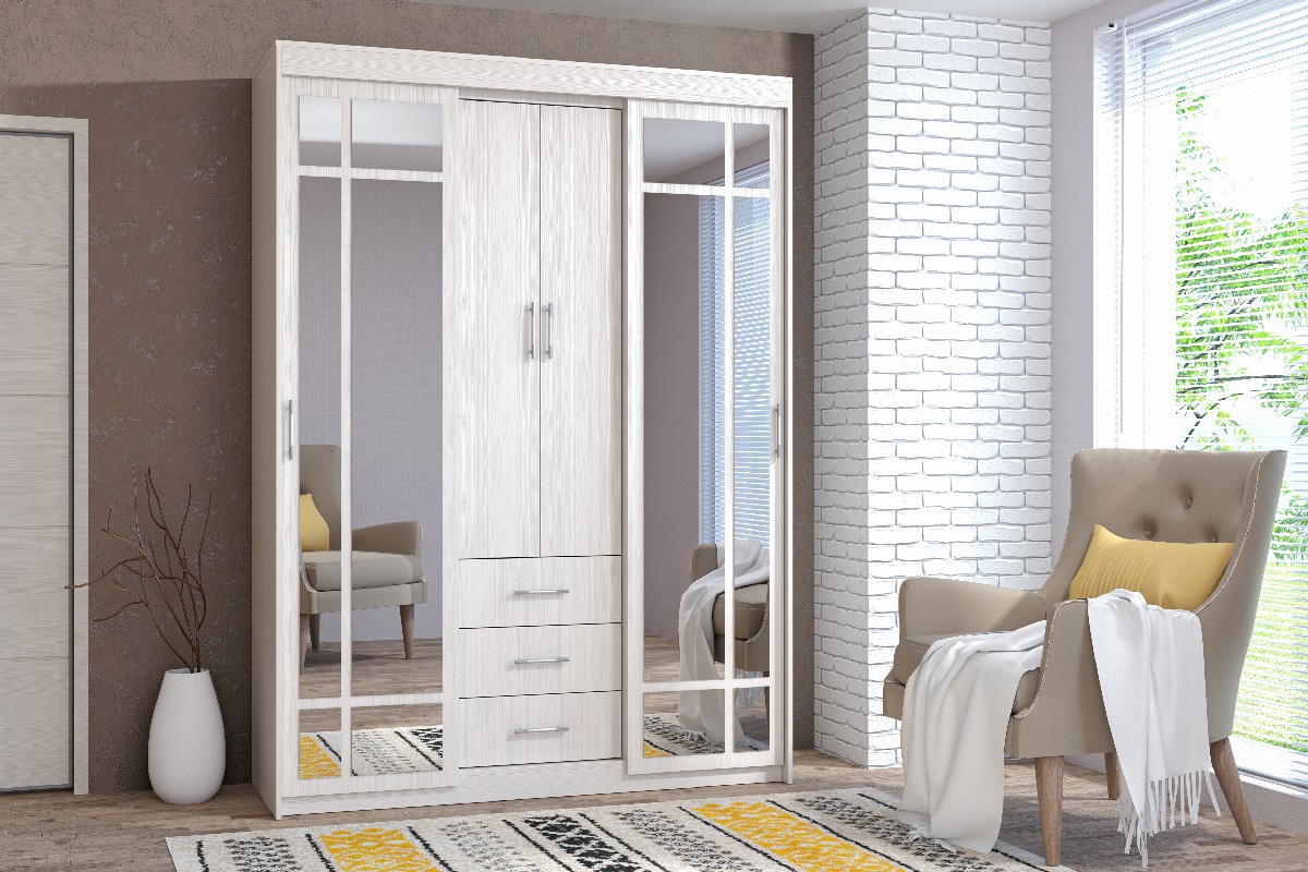 Описание: Вместительный и функциональный шкаф-купе "Диал 010" имеет стильный современный дизайн и надёжную конструкцию. Особую элегантность модели придают оригинальные изящные разрезные зеркала с фацетной кромкой по периметру.
