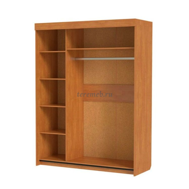 Справа отделение для одежды с металлической горизонтальной штангой и антресольной полкой для головных уборов.