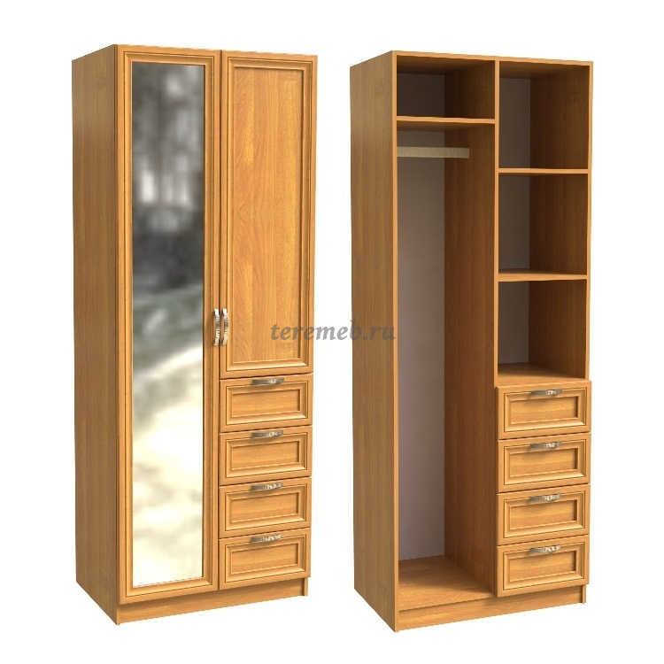 Справа отделение с двумя полками для белья. Расстояние между полками 400 мм. Под ним расположены четыре выдвижных ящика, установленные на роликовых направляющих.