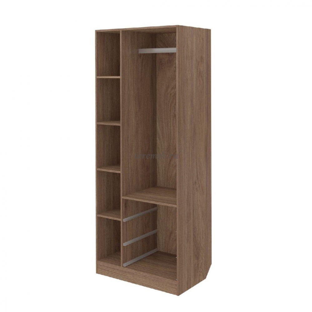 Слева отделение с одной распашной дверью, за которой установлены четыре полки для белья. Расстояние между полками 400 мм.
