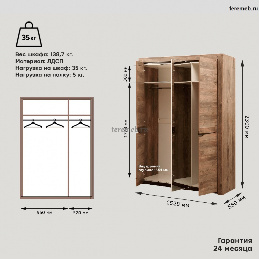 Изготовлен из высококачественного ламинированного ДСП толщиной 16 мм.