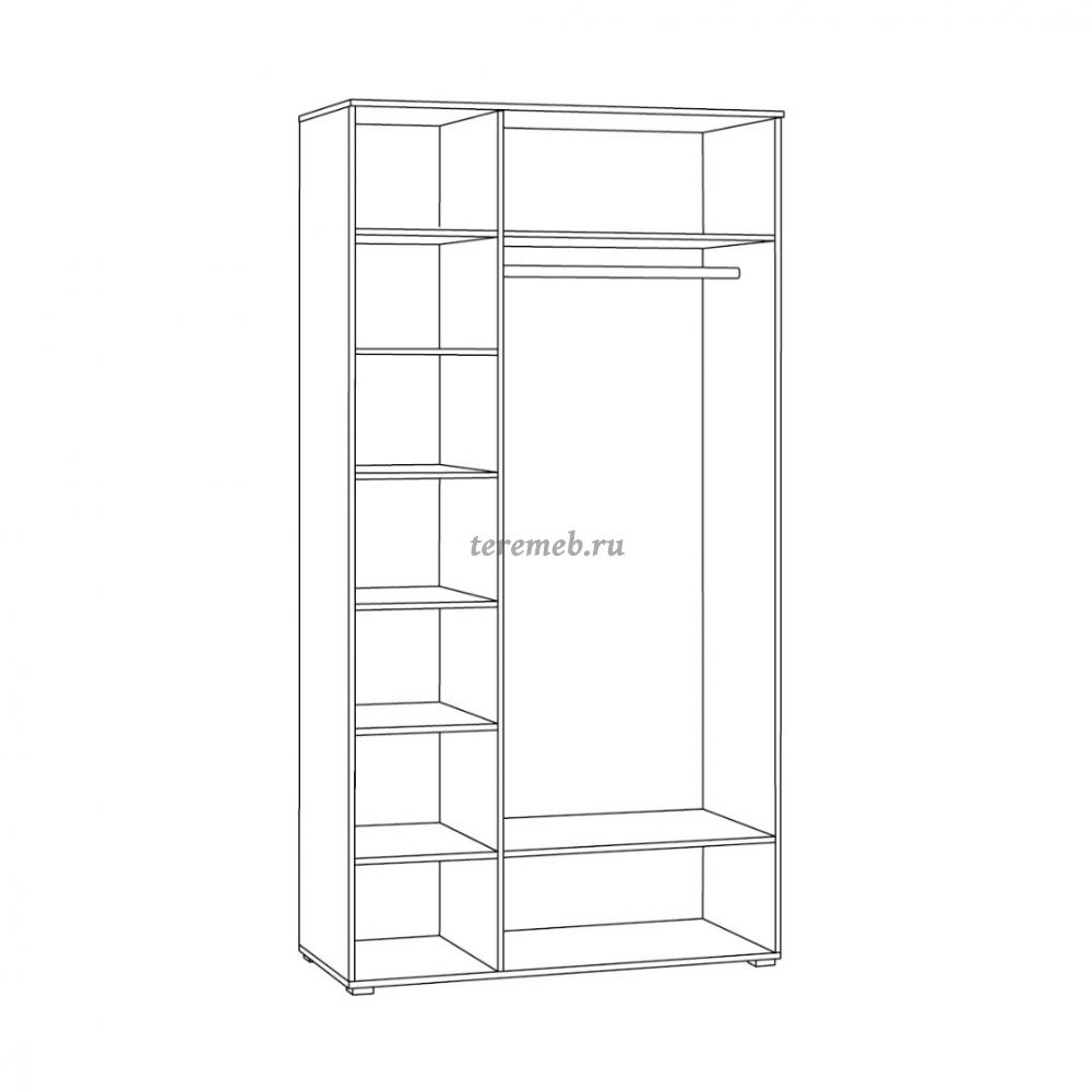 Конструкция данной модели универсальна: шкаф может собираться как на правую, так и на левую стороны.