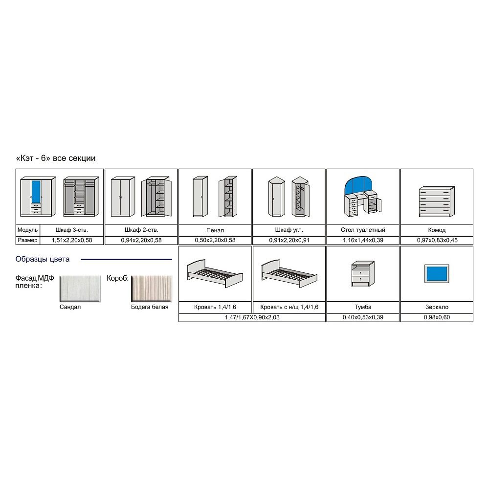 Шкаф 3-х створчатый "Кэт-6" может быть использован как самостоятельный предмет интерьера, так и дополнен элементами модульного спального гарнитура "Кэт-6", выполненного с ним в едином дизайне и цветовой гамме.
