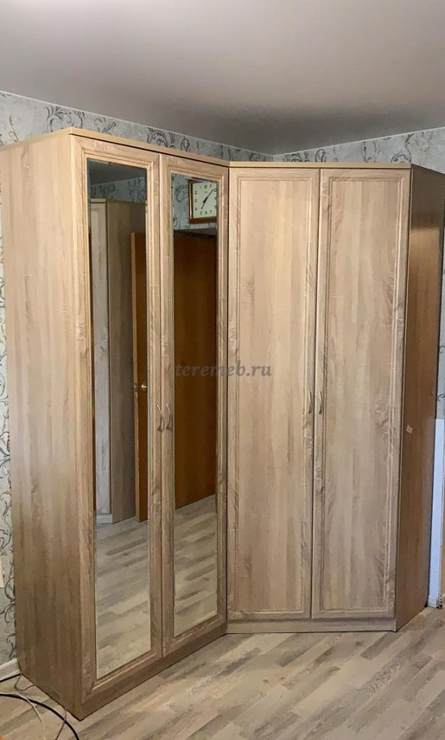 Фасады дверей и ящиков выполнены из накладного профиля МДФ с 10 мм вставкой из ЛДСП. Большие зеркала в полный рост выполнены с толщиной 4 мм с фацетной кромкой и наклеены в заводских условиях. Ответная планка дверных фасадов устанавливается с помощью евровинтов, что обеспечивает жёсткое соединение с боковиной и даёт возможность многократной сборки.
