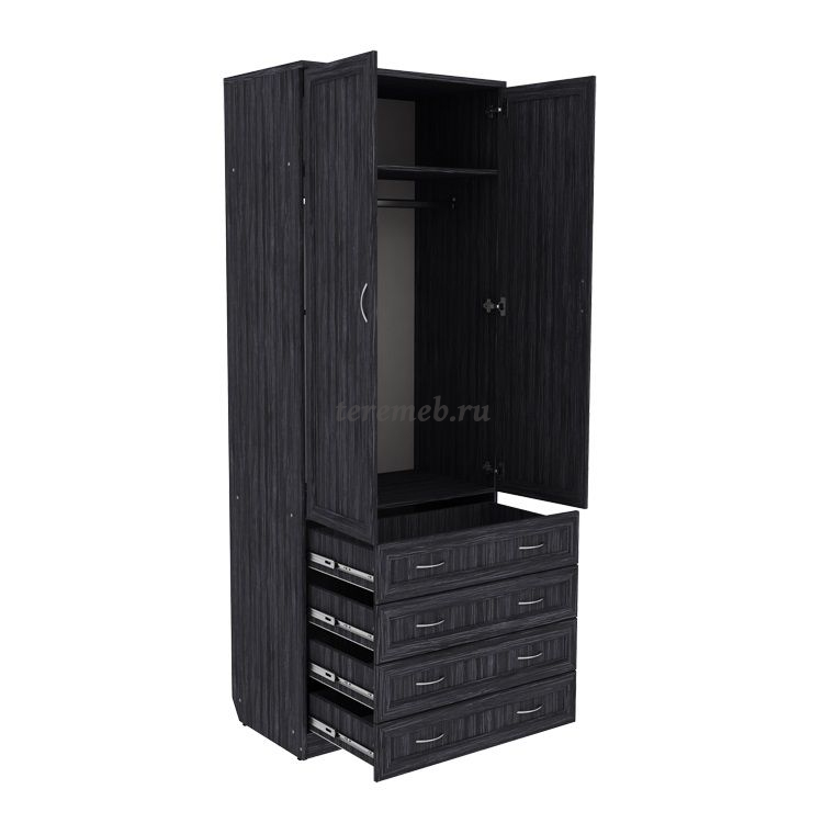 Нижняя часть имеет четыре выдвижных ящика, для хранения белья, а также предметов галантереи. Внутренний размер ящика (ДхГхВ): 732х384х120 мм.