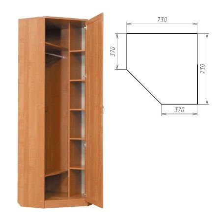 Большой и функциональный угловой шкаф со штангой и полками "Гарун 402" идеально впишется в угол любой гостиной или спальни.